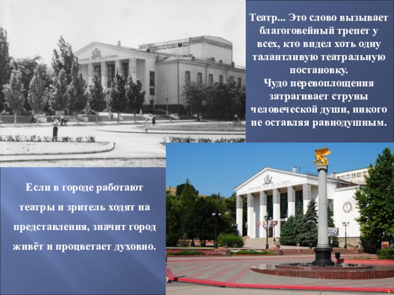 Если в городе работают театры и зритель ходят на представления, значит город живёт и процветает духовно.