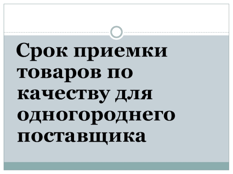Слайд 59 Срок приемки товаров по качеству для одногороднего поставщика
