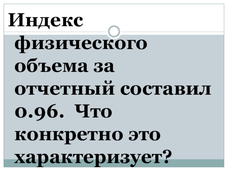 Слайд 56Индекс физического объема за отчетный составил 0.96. Что конкретно это характеризует?