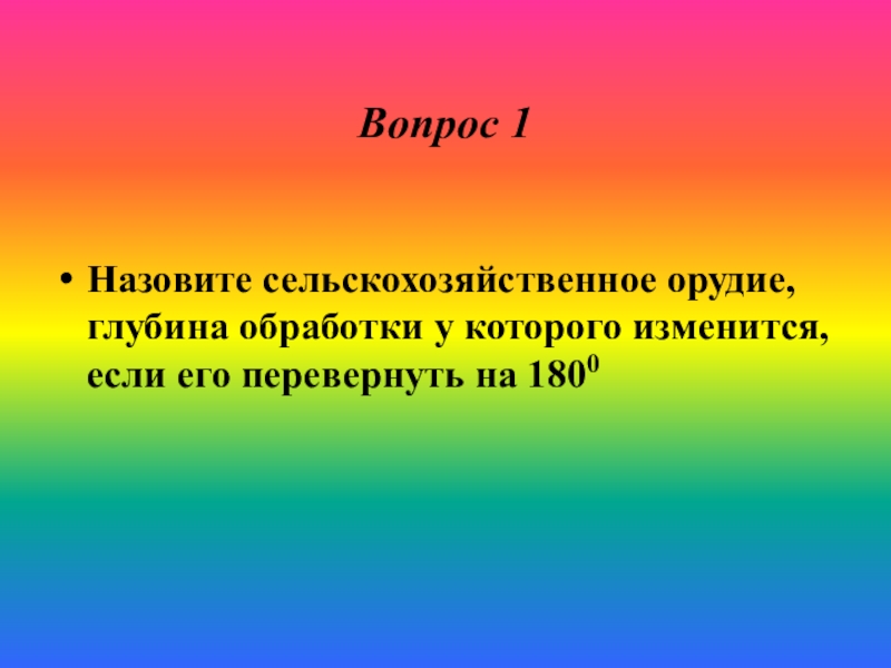 Вопрос 1Назовите сельскохозяйственное орудие, глубина обработки у которого изменится, если его перевернуть на 1800