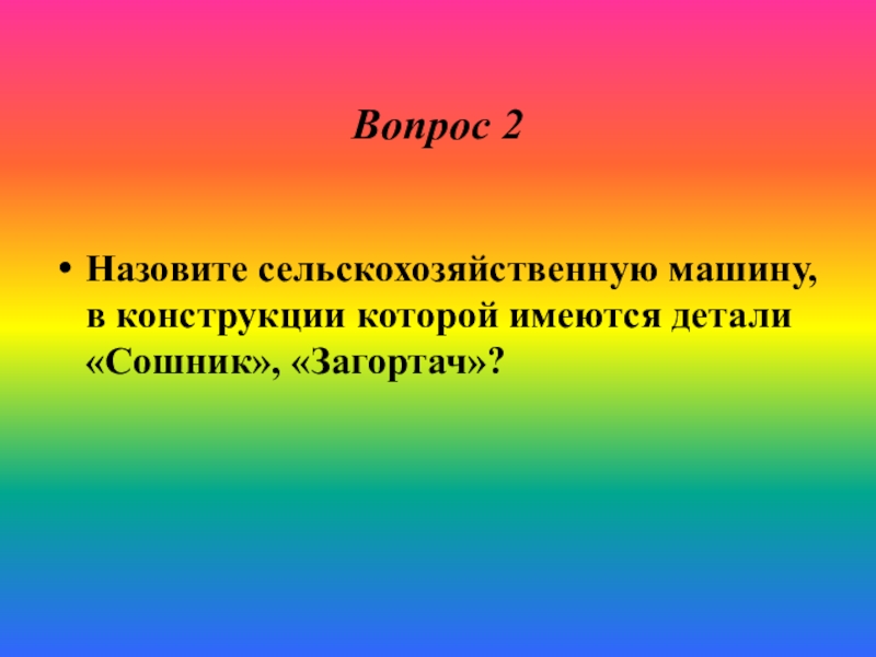 Вопрос 2Назовите сельскохозяйственную машину, в конструкции которой имеются детали «Сошник», «Загортач»?
