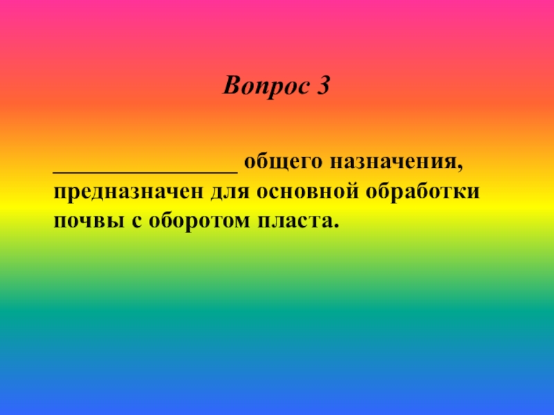 Вопрос 3_______________ общего назначения, предназначен для основной обработки почвы с оборотом пласта.