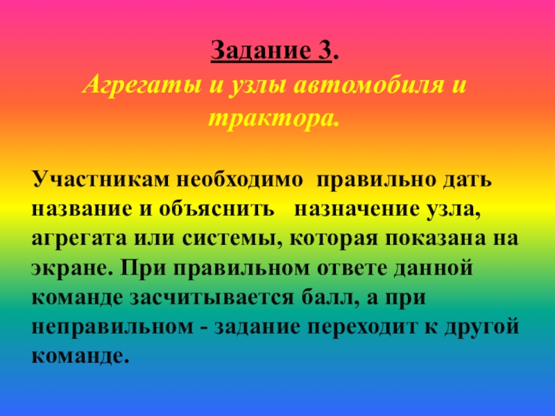 Слайд 16Задание 3. Агрегаты и узлы автомобиля и трактора.