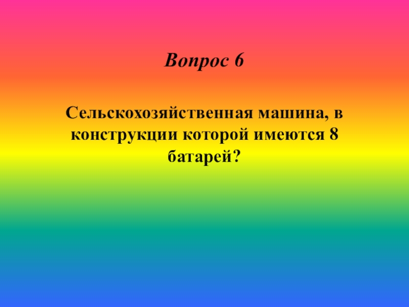 Вопрос 6Сельскохозяйственная машина, в конструкции которой имеются 8 батарей?