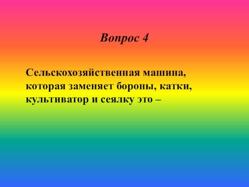 Вопрос 4Сельскохозяйственная машина, которая заменяет бороны, катки, культиватор и сеялку это –