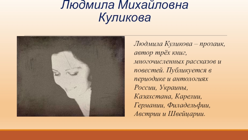 Людмила Куликова – прозаик, автор трёх книг, многочисленных рассказов