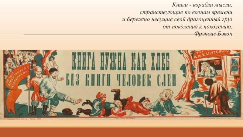 Книги - корабли мысли,   странствующие по волнам времени   и бережно несущие свой драгоценный груз   от поколения к поколению.Фрэнсис Бэкон
