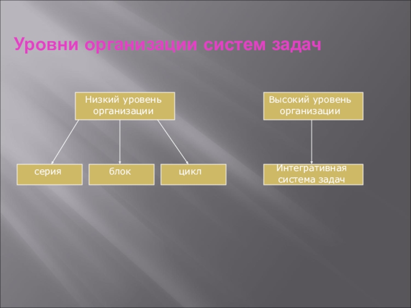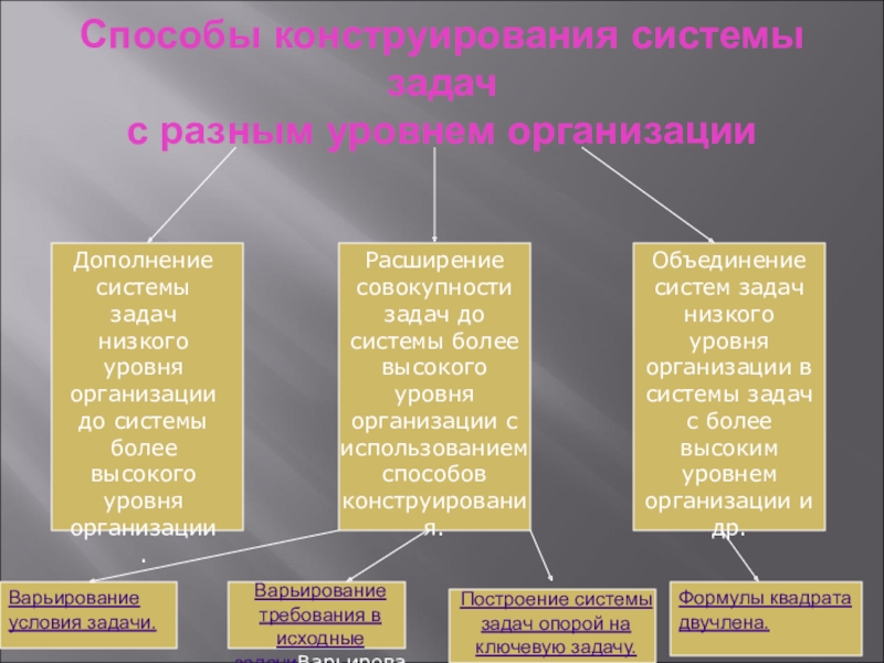 Объединение систем задач низкого уровня организации в системы задач с более высоким уровнем организации и др.
