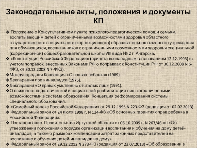 Постановление Правительства Иркутской области от 06.10.2009 г. N 267/46-пп «Об утверждении положения о порядке организации воспитания и обучения на дому детей-инвалидов, а также о размерах компенсации затрат законных представителей на воспитание и обучение детей-инвалидов на дому».