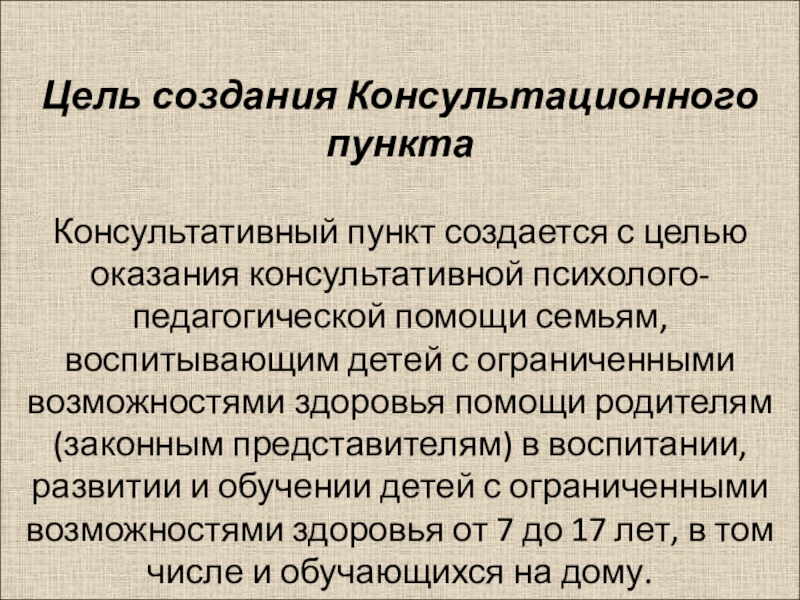 Консультативный пункт создается с целью оказания консультативной психолого-педагогической