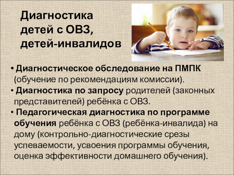Диагностика по запросу родителей (законных представителей) ребёнка с ОВЗ.