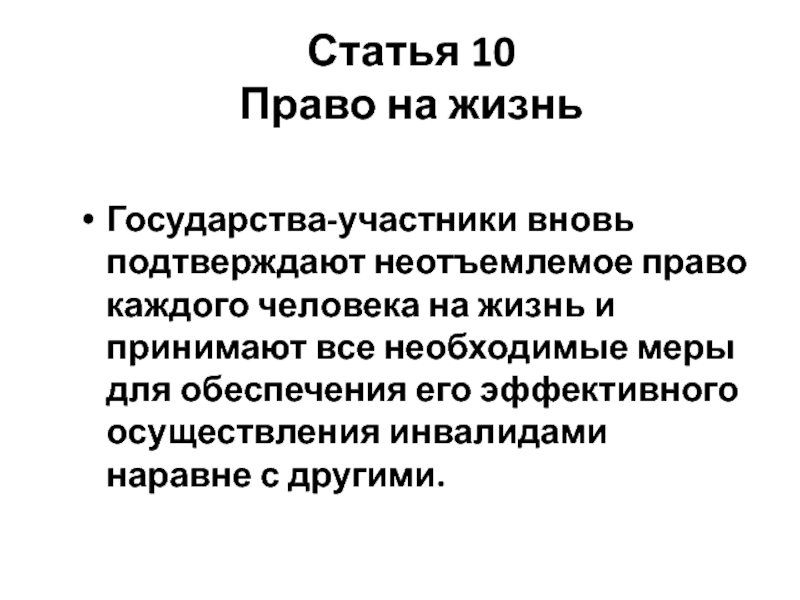 жизнь и принимают все необходимые меры для обеспечения его эффективного осуществления инвалидами наравне с другими.