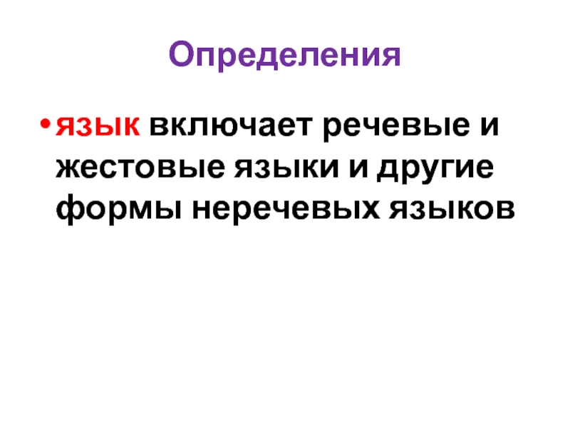 язык включает речевые и жестовые языки и другие формы неречевых языков