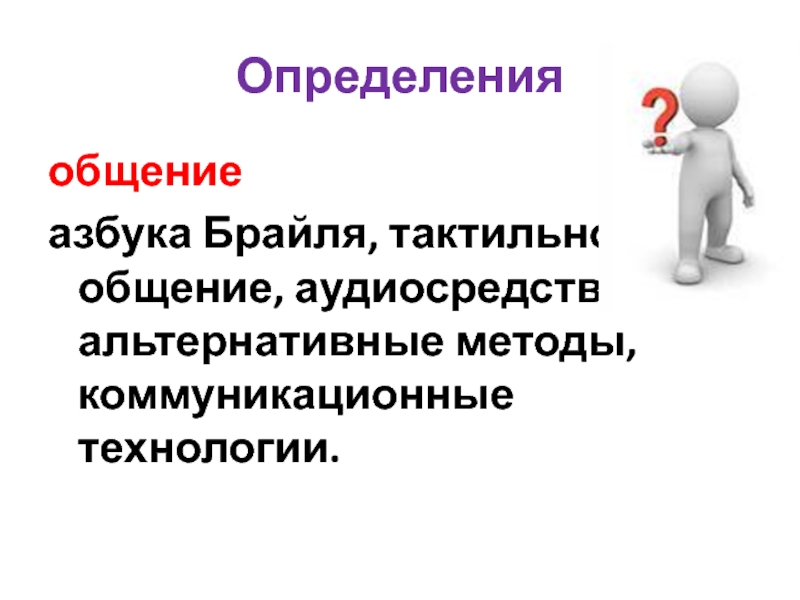 азбука Брайля, тактильное общение, аудиосредства, альтернативные методы, коммуникационные технологии.