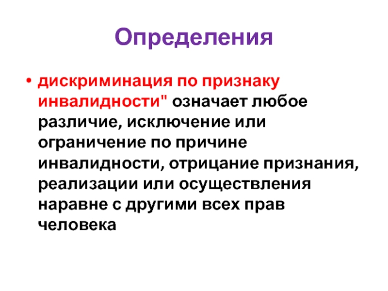 инвалидности, отрицание признания, реализации или осуществления наравне с другими всех прав человека