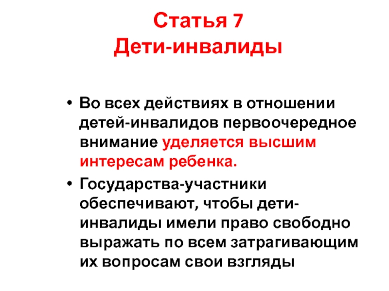 Государства-участники обеспечивают, чтобы дети-инвалиды имели право свободно выражать по всем затрагивающим их вопросам свои взгляды