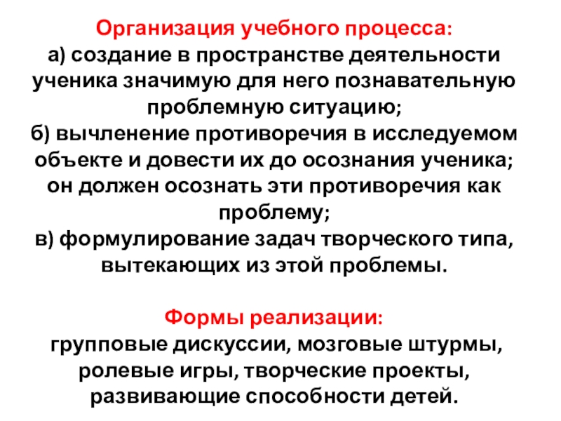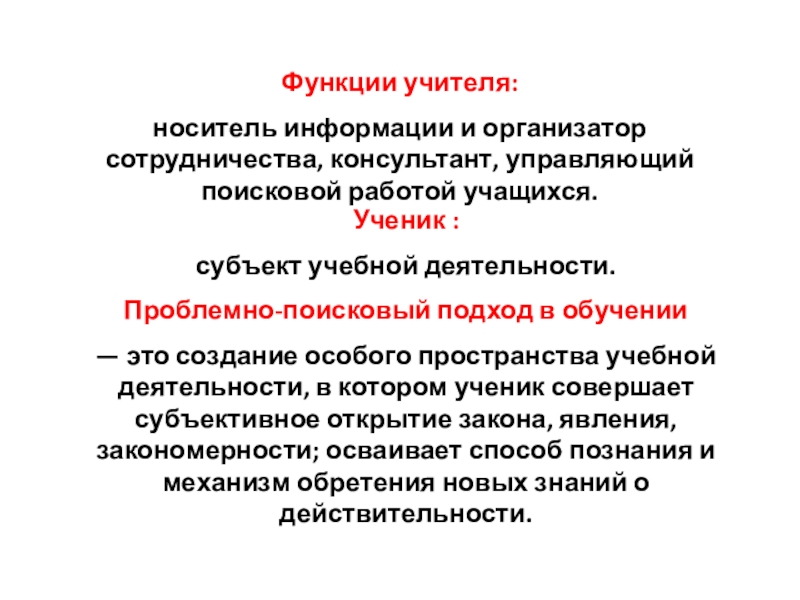 — это создание особого пространства учебной деятельности, в котором ученик совершает субъективное открытие закона, явления, закономерности; осваивает способ познания и механизм обретения новых знаний о действительности.