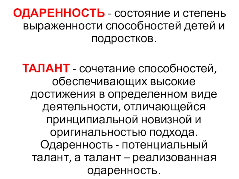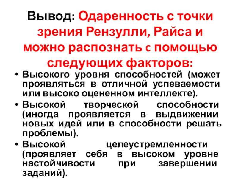 Высокого уровня способностей (может проявляться в отличной успеваемости или высоко оцененном интеллекте).