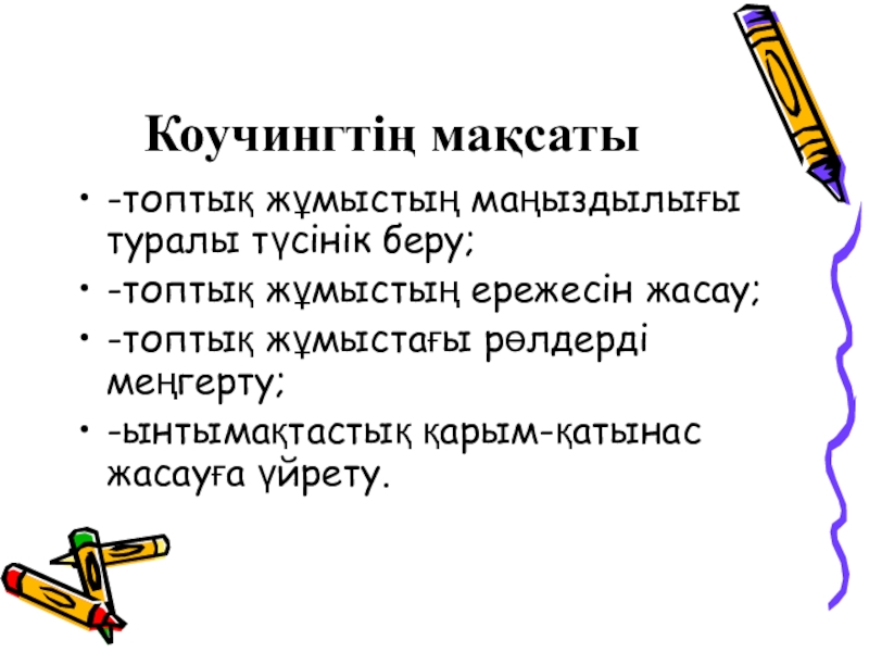 Презентация, доклад коучинга на тему Топтық жұмыстың маңызы