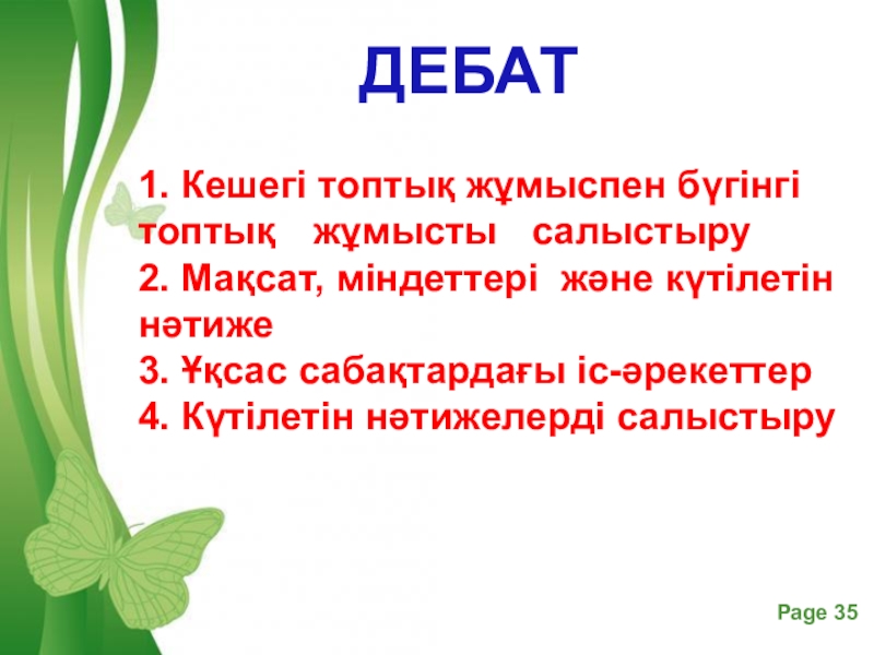 Слайд 351. Кешегі топтық жұмыспен бүгінгі топтық жұмысты салыстыру