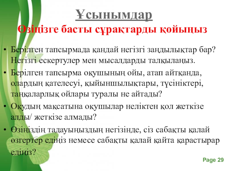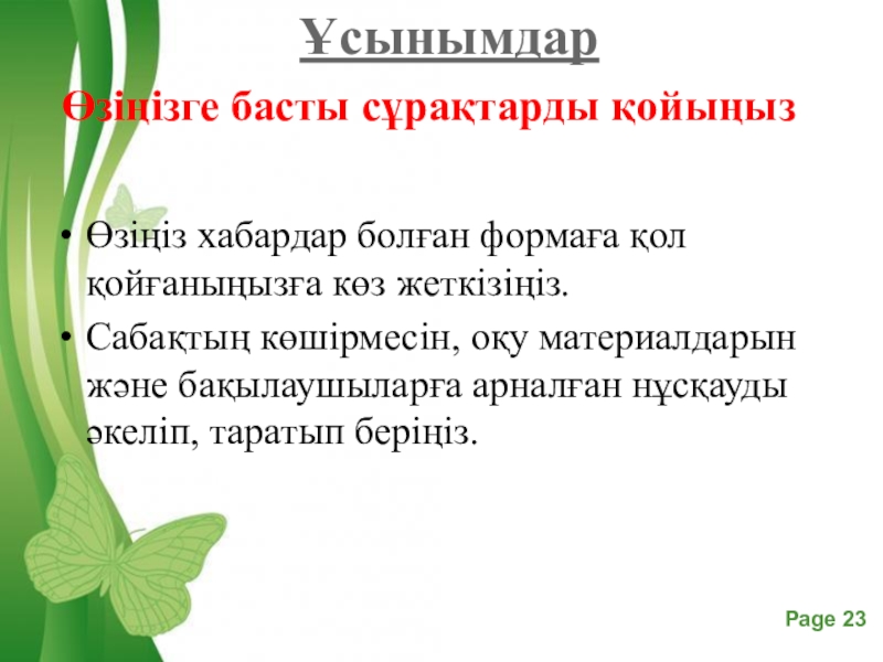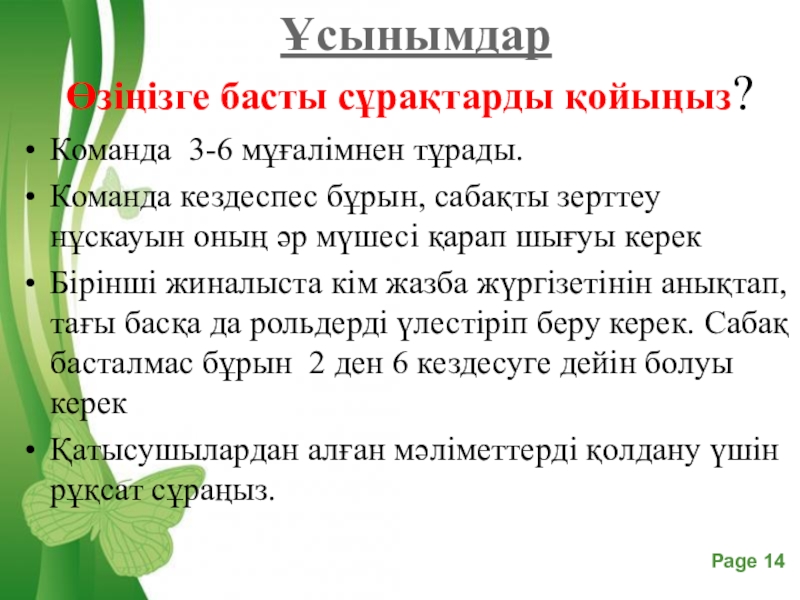 Слайд 14 Ұсынымдар