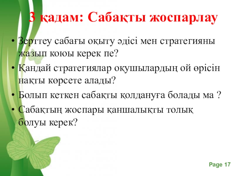 Слайд 17 3 қадам: Сабақты жоспарлау