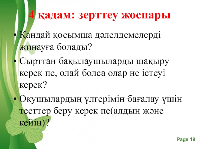 Слайд 194 қадам: зерттеу жоспары