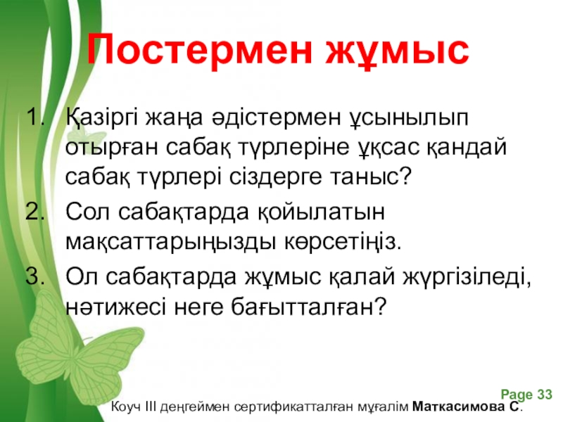 Коуч ІІІ деңгеймен сертификатталған мұғалім Маткасимова С.