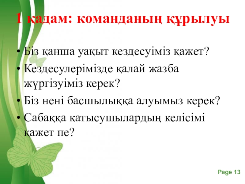 Слайд 131 қадам: команданың құрылуы