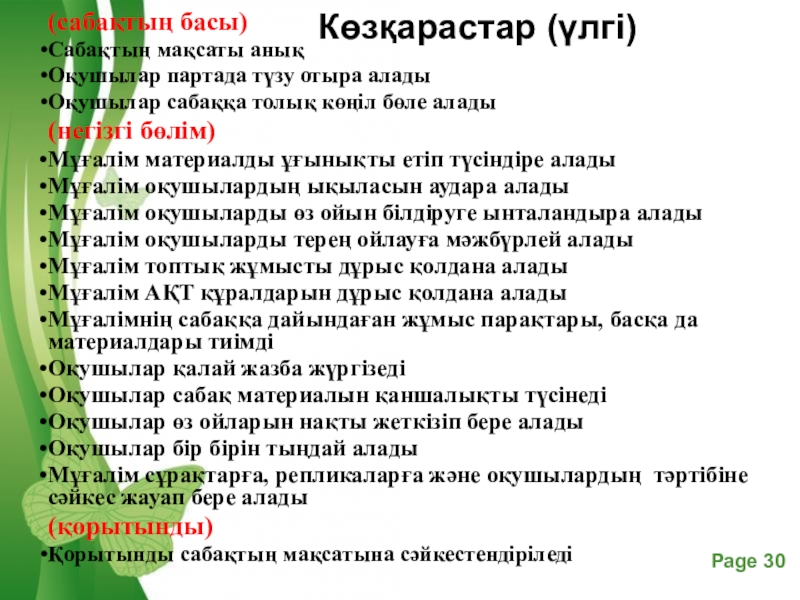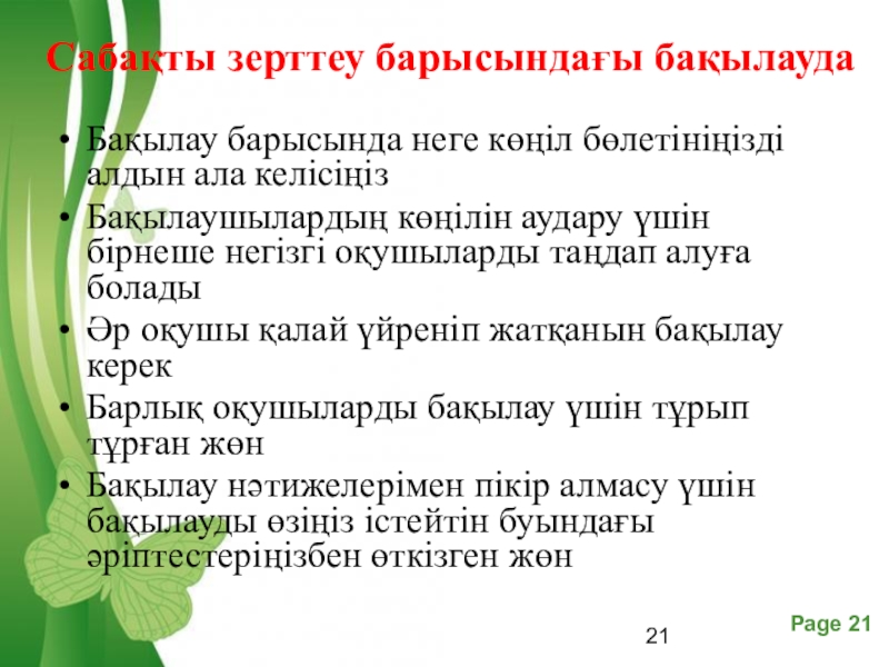 Слайд 21Сабақты зерттеу барысындағы бақылауда