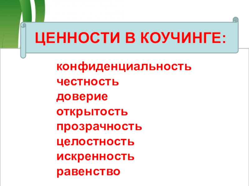 ЦЕННОСТИ В КОУЧИНГЕ: