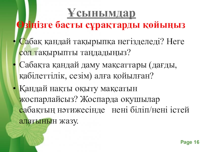 Слайд 16Өзіңізге басты сұрақтарды қойыңыз