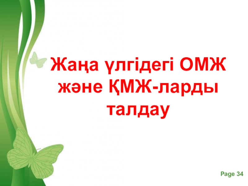 Слайд 34Жаңа үлгідегі ОМЖ және ҚМЖ-ларды талдау