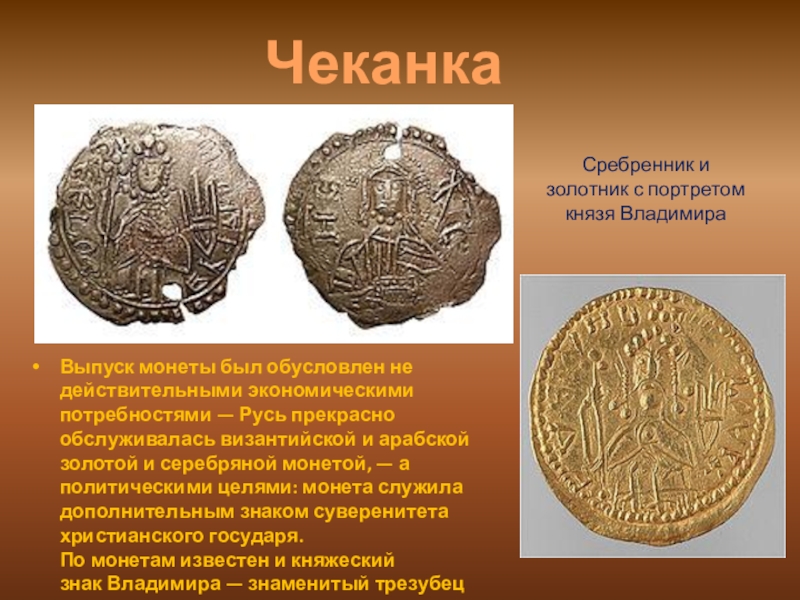 Сребренник и золотник с портретом князя Владимира