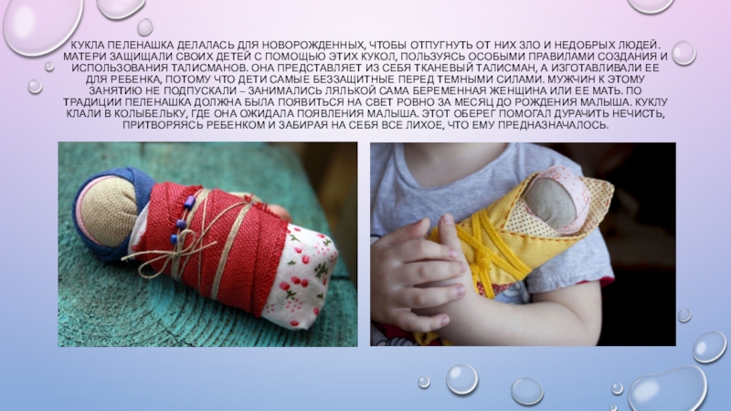 Слайд 13Кукла Пеленашка делалась для новорожденных, чтобы отпугнуть от них зло и