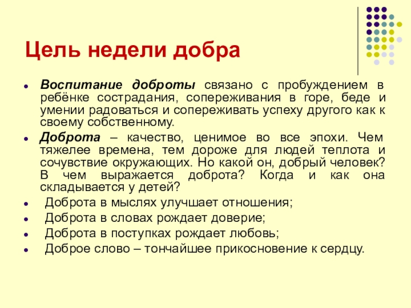 Слайд 15Цель недели добра