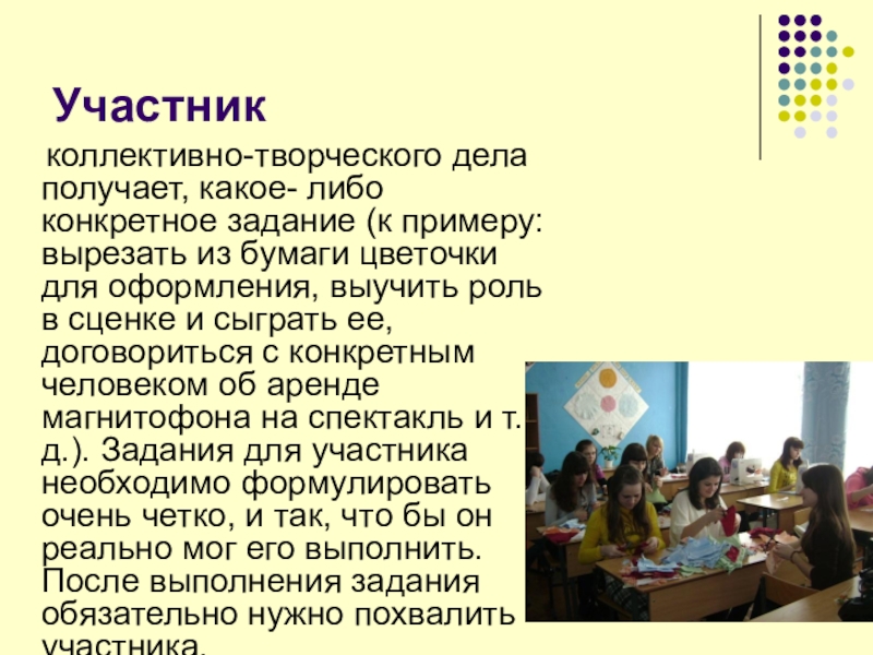 коллективно-творческого дела получает, какое- либо конкретное задание (к