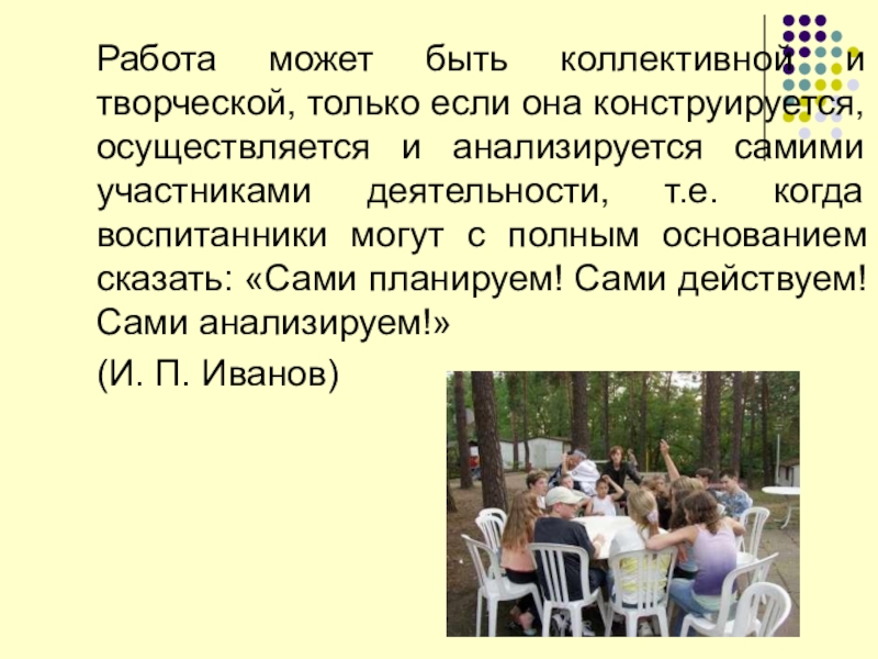 Слайд 2Работа может быть коллективной и творческой, только если она конструируется, осуществляется