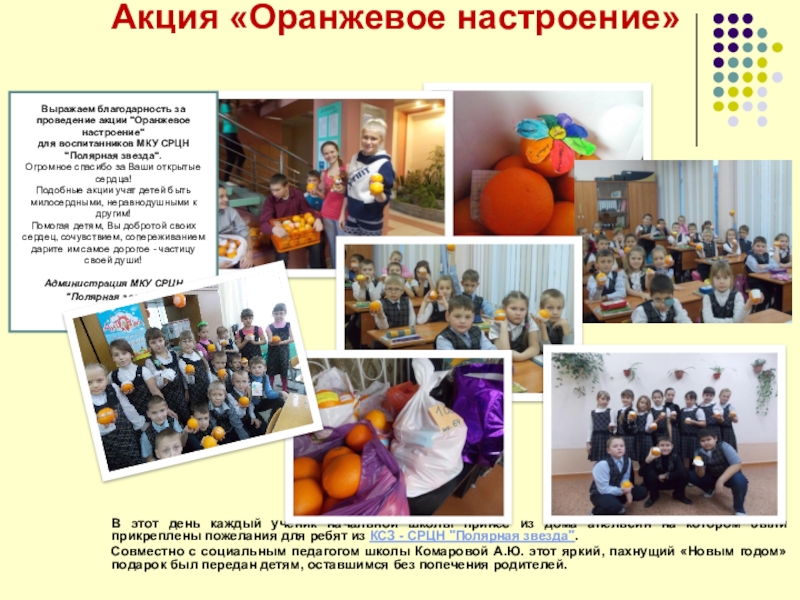 дома апельсин на котором были прикреплены пожелания для ребят из КСЗ - СРЦН "Полярная звезда".