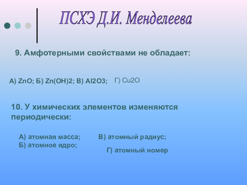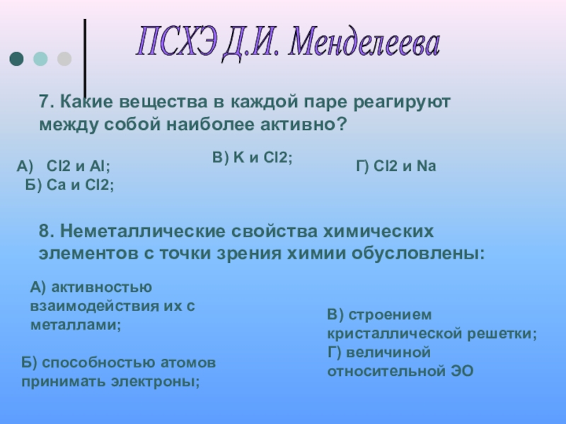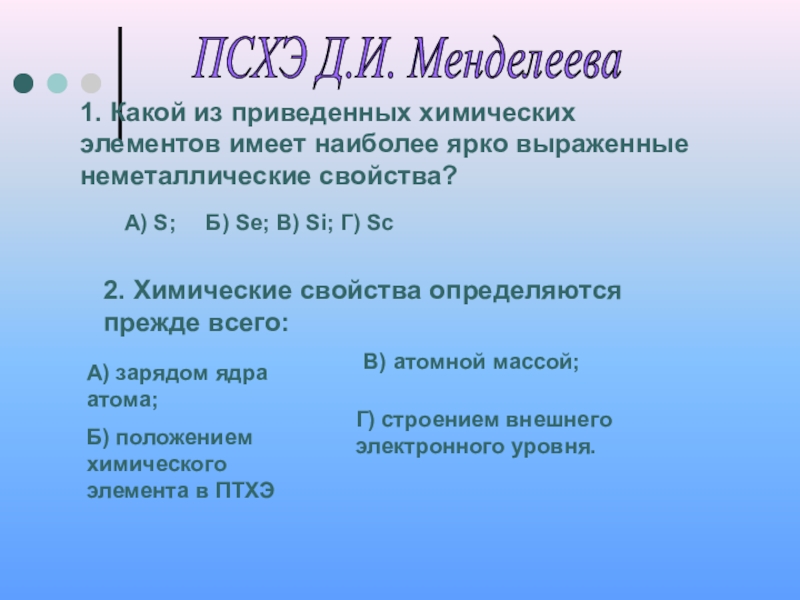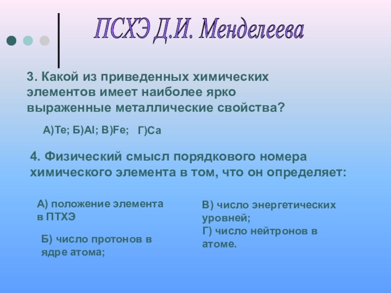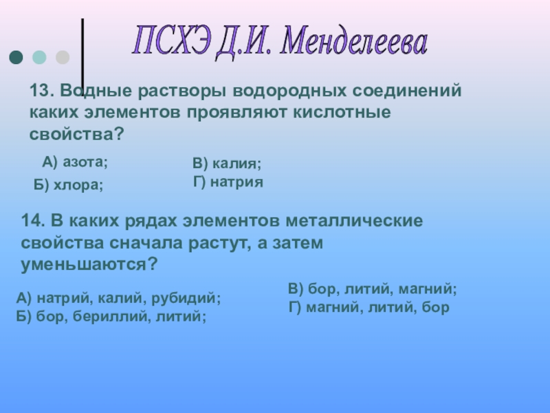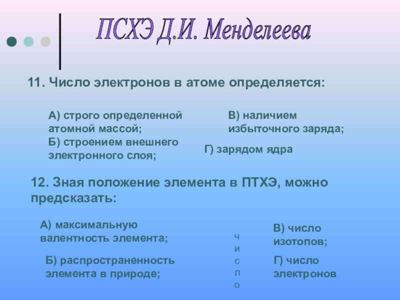 12. Зная положение элемента в ПТХЭ, можно предсказать:
