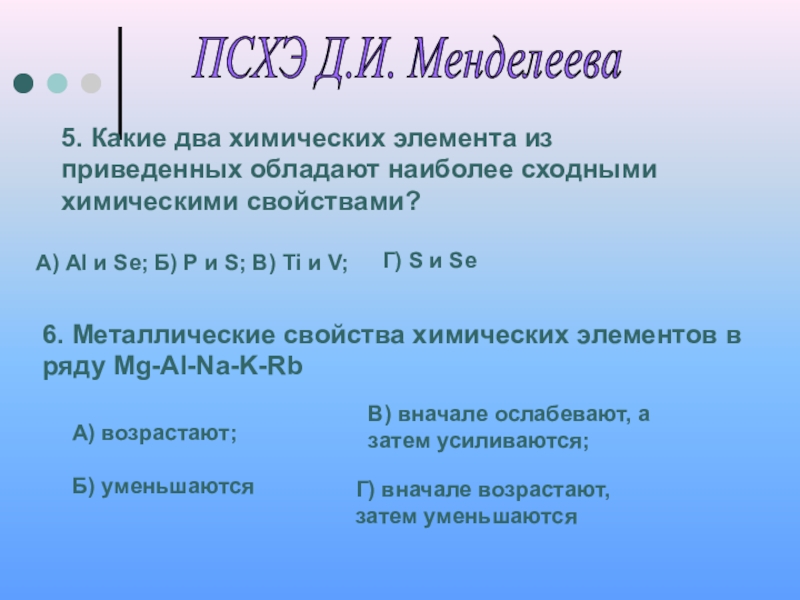 6. Металлические свойства химических элементов в ряду Mg-Al-Na-K-Rb