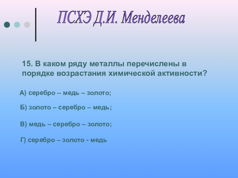 14. В каких рядах элементов металлические свойства сначала растут, а затем уменьшаются?