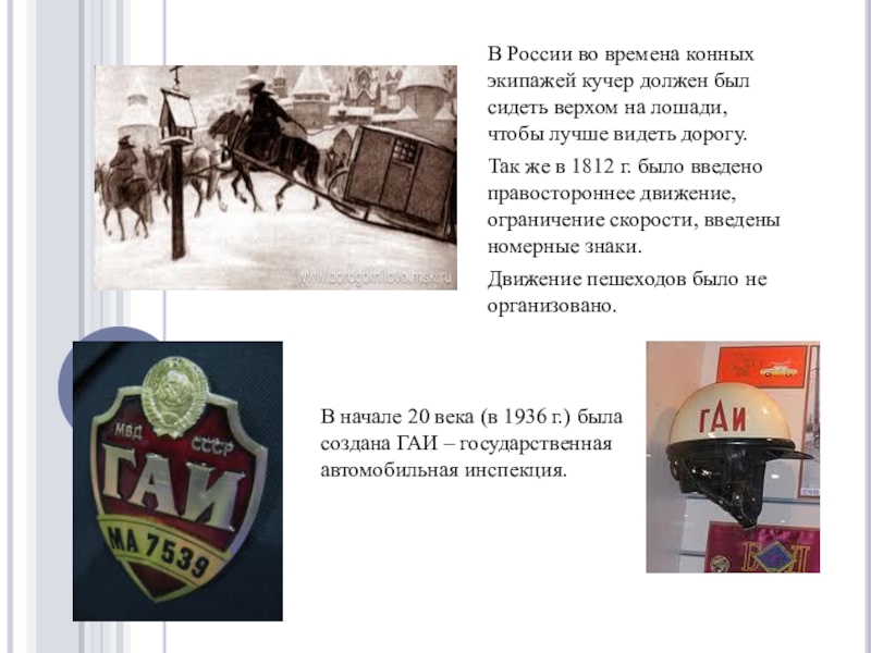 В начале 20 века (в 1936 г.) была создана ГАИ – государственная автомобильная инспекция.