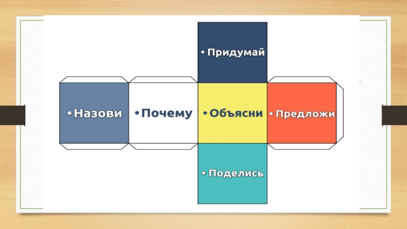 3. Учитель бросает кубик. Выпавшая грань укажет: какого типа вопрос следует задать. Удобнее ориентироваться по слову на грани кубика — с него и должен начинаться вопрос.