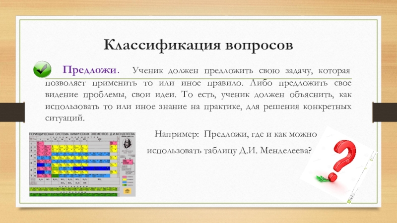 применить то или иное правило. Либо предложить свое видение проблемы, свои идеи. То есть, ученик должен объяснить, как использовать то или иное знание на практике, для решения конкретных ситуаций.