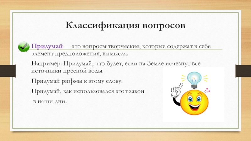 Придумай — это вопросы творческие, которые содержат в себе элемент предположения,