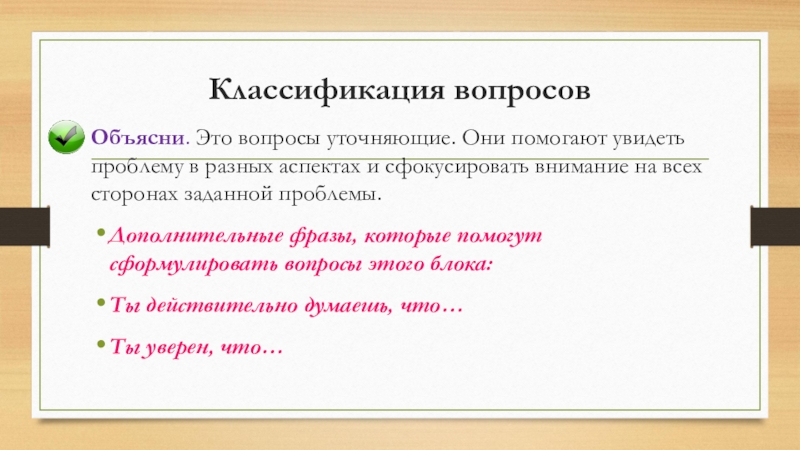 Объясни. Это вопросы уточняющие. Они помогают увидеть проблему в разных