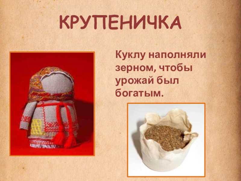 Куклу наполняли зерном, чтобы урожай был богатым. КРУПЕНИЧКА