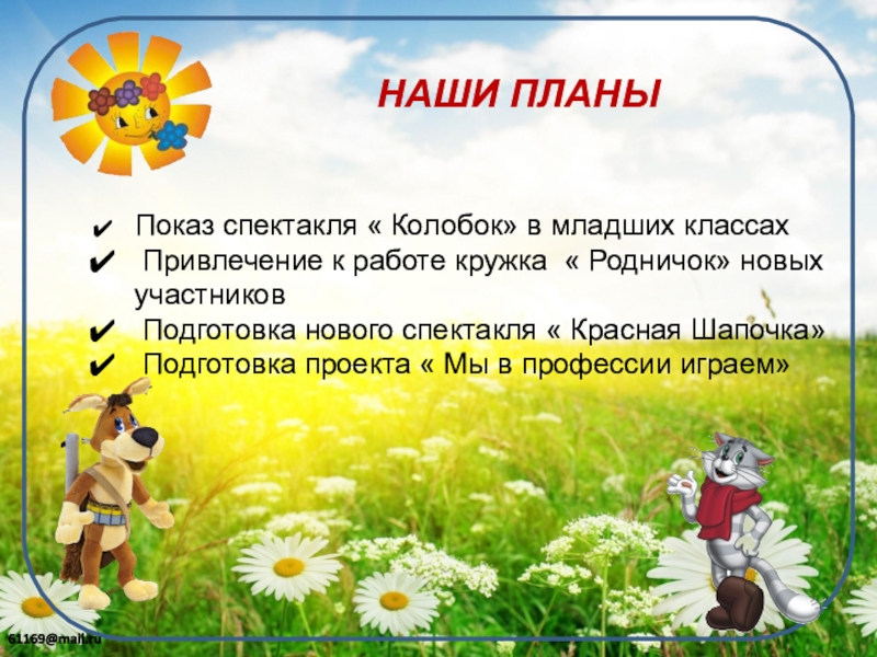 Это сайт презентаций, где можно хранить и обмениваться своими презентациями, докладами, проектами, шаблонами в формате PowerPoint с другими пользователями. Мы помогаем школьникам, студентам, учителям, преподавателям хранить и обмениваться учебными материалами.