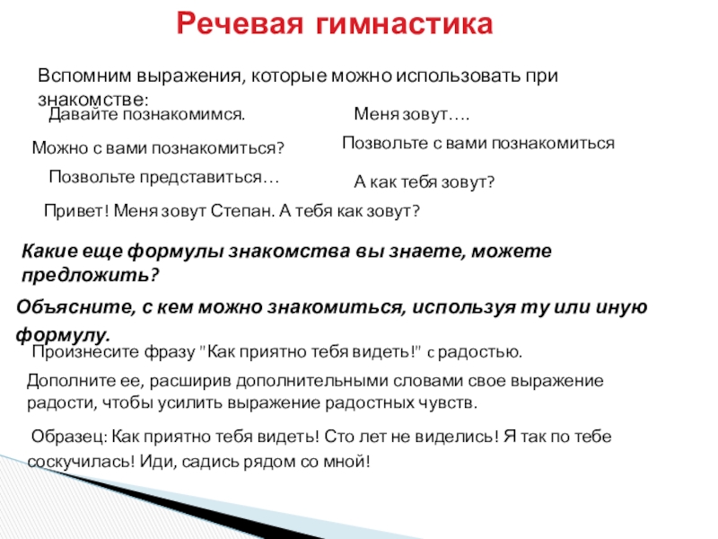 Какие еще формулы знакомства вы знаете, можете предложить?